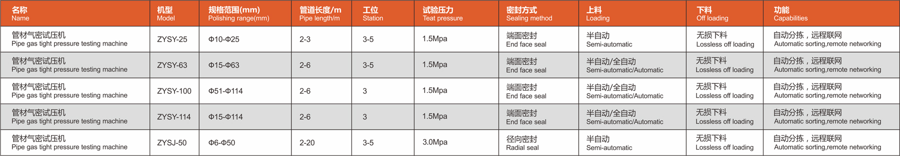 This equipment is mainly used for stainless steel pipe gas tight pressure test,adopts radial seal or face mode. Face seal wedge force multiplier patent design, pressure up to 1.5Mpa.